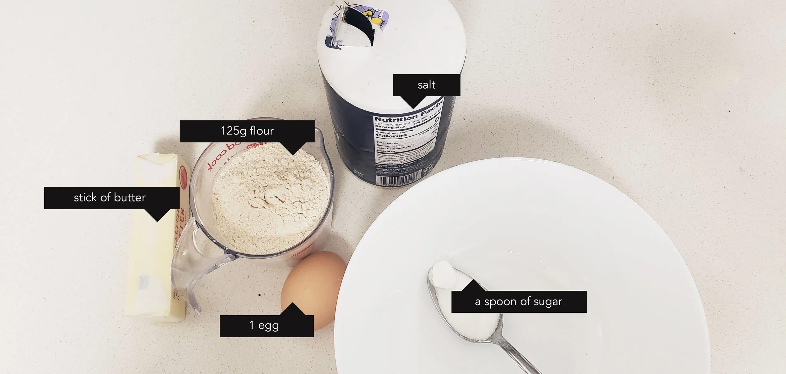 Use your fingers to rub the flour into the butter until it resembles breadcrumbsAdd the egg and rub the dough until you can form a ball.